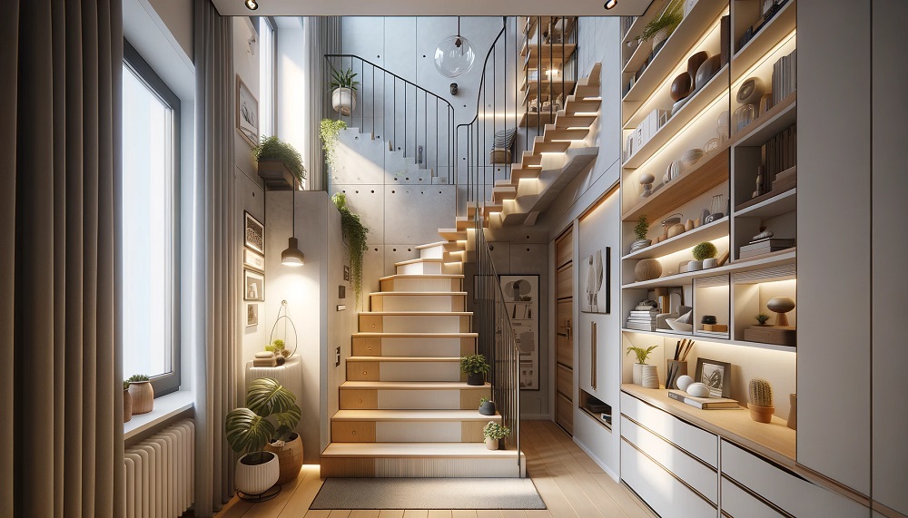 Maximizing storage in a small staircase area is both a challenge and an opportunity. Creative solutions include: